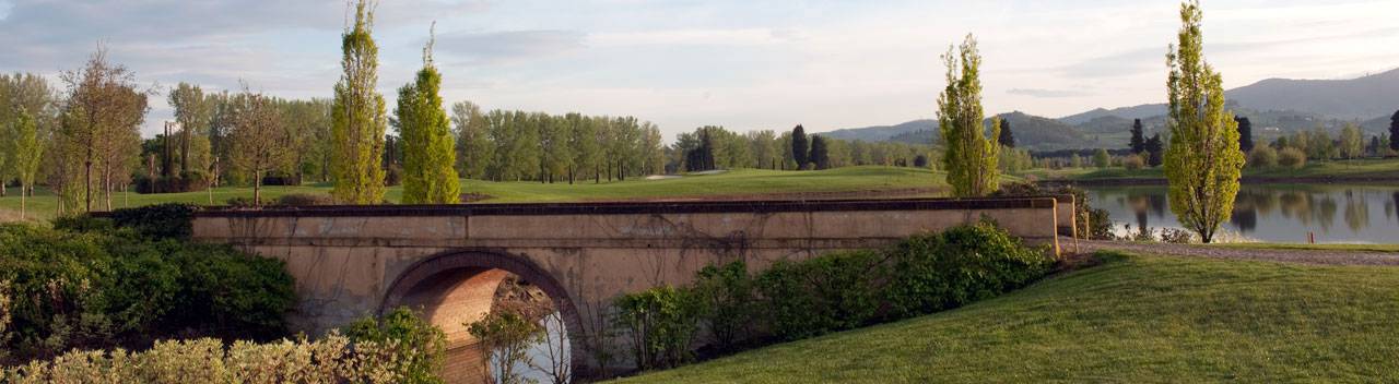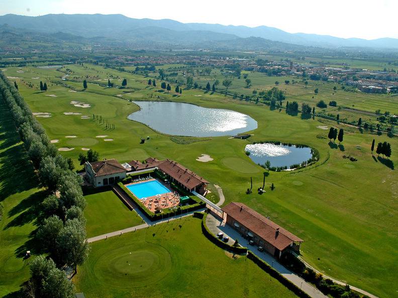hazards and its wide, undulating greens guarantee a truly entertaining game of golf. The club house is the result of skilful restoration work on the old "Casa del Podere San Leopoldo"; the renovation works helped to highlight the