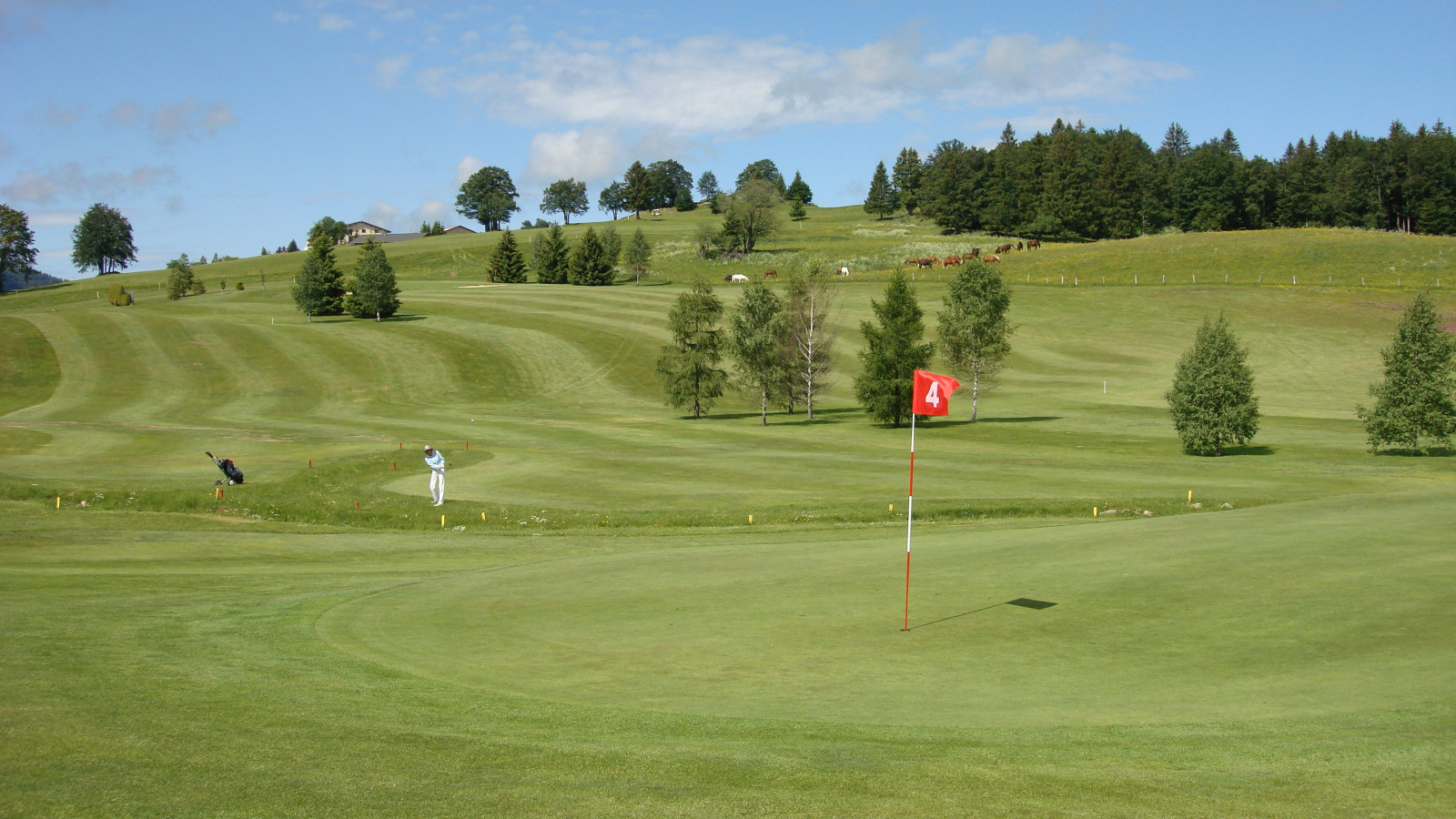 Located on the heights of the Jura, Golf du Rochat is perched at an altitude of around 1100 m, in the Haut-Jura Natural Park. Its 18-hole course in the heart of nature will lead you through hilly terrain and wooded areas near a magnificent body of water.